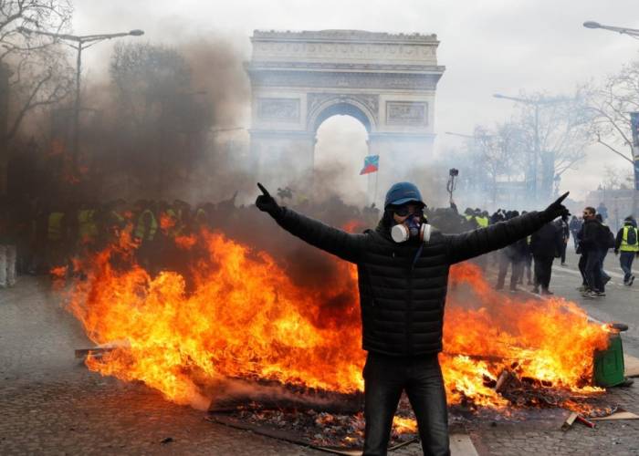 The French government faced heavy criticism Sunday over failing to maintain law and order during an arson and looting rampage by "yellow vest" protesters along the famous Champs-Elysees in Paris.