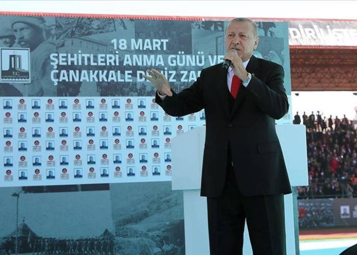 “We're here; we're in Canakkale. We're in this country with Thrace and Anatolia; we're here with Turks, Kurds, Arabs, Circassians, Bosnians, and Roma people, we're in Canakkale, in Turkey,” Erdogan said.