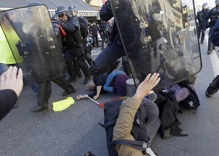 French officials faced fresh questions Sunday about the handling of the "yellow vest" protests after an elderly activist was seriously injured during a police charge in the southern city of Nice.