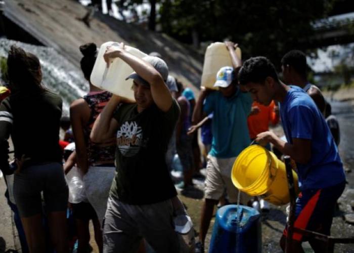 Residents of Caracas, deprived of tap water for two weeks, are flocking to places such as parks and gardens, while others break into drainage and sewage pipes in an effort to reach water.
