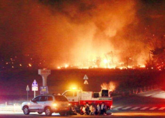 The blaze broke out late Thursday alongside a road in the town of Goseong, in the far northeast of the country and only around 45 kilometres (28 miles) from the border with the nuclear-armed North.