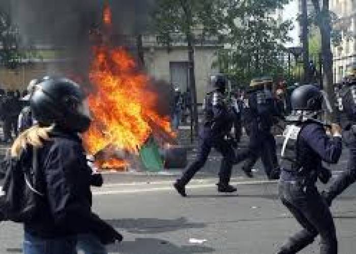 Probe after French officer seen hurling stone at protesters