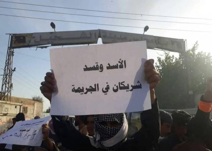 Images sent to Middle East Eye showed demonstrators holding banners describing President Bashar al-Assad's government and the SDF as "partners in crime", as protests spread across villages held by the Kurdish-dominated militia.