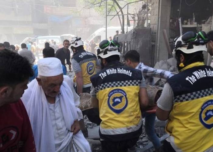 Nearby, rescue workers known as the White Helmets directed a bulldozer to clear the debris.