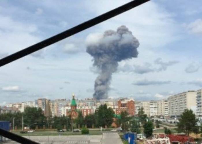 Russian state TV Rossiya 24 showed footage of a plume of smoke rising over the explosives factory.