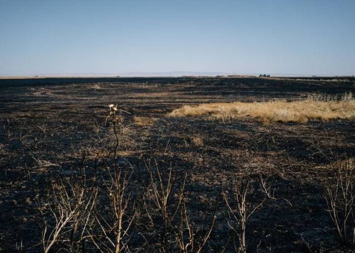 “It went up in flames in a moment,” he said, standing in his scorched field of blackened crops holding a lone golden bushel.