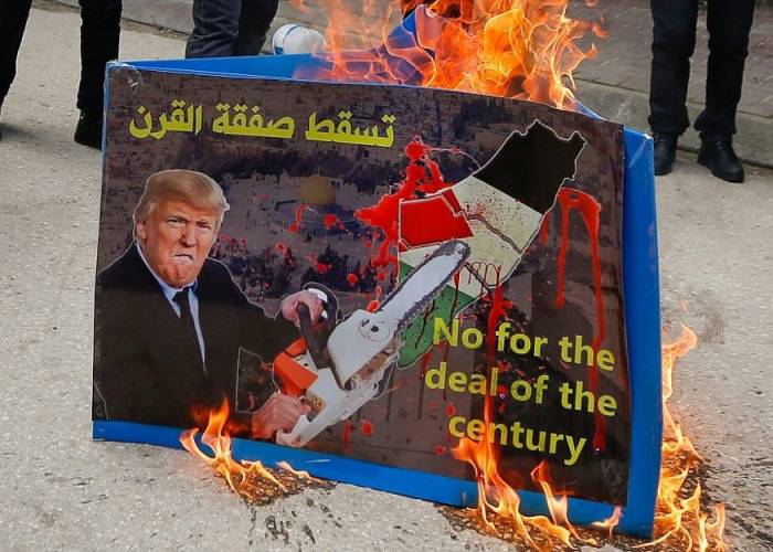 Thousands of Palestinians demonstrated Tuesday throughout the occupied West Bank and the Gaza Strip against the launch of the US administration's Middle East peace plan.