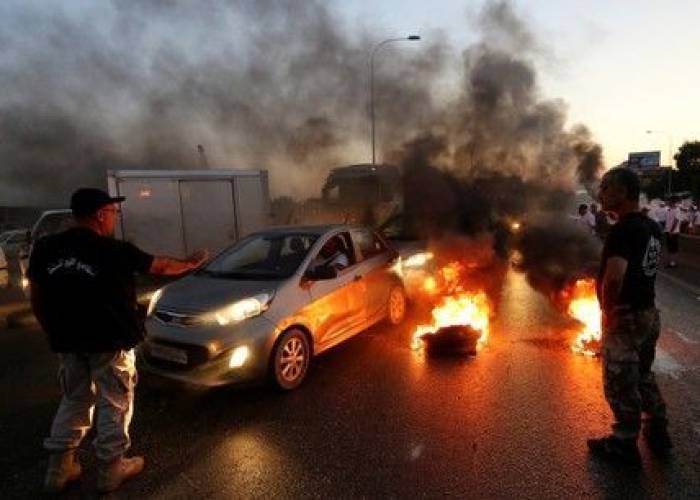 Lebanese veterans burned tires, sparking fires along the highway in Naameh, south of Beirut, early on Thursday.