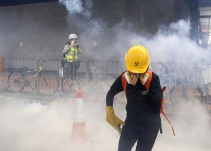 Then demonstrators popped up again in Kowloon, a large urban district on the mainland side of Hong Kong’s harbor, only for police to fire another volley of gas from Tsim Sha Tsui police station, sending nearby tourists running with welling tears.