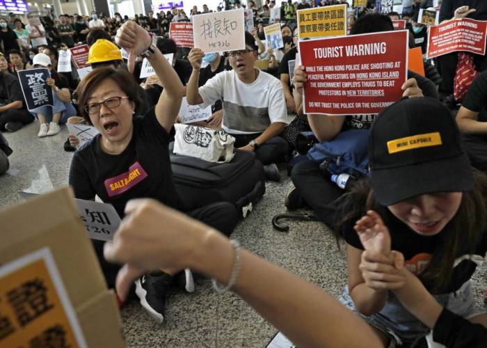 Pro-democracy activists staged three days of sit-ins at the airport from Friday, but the protests were significantly smaller than Monday's which followed a weekend of often violent confrontations between police and demonstrators across the city.