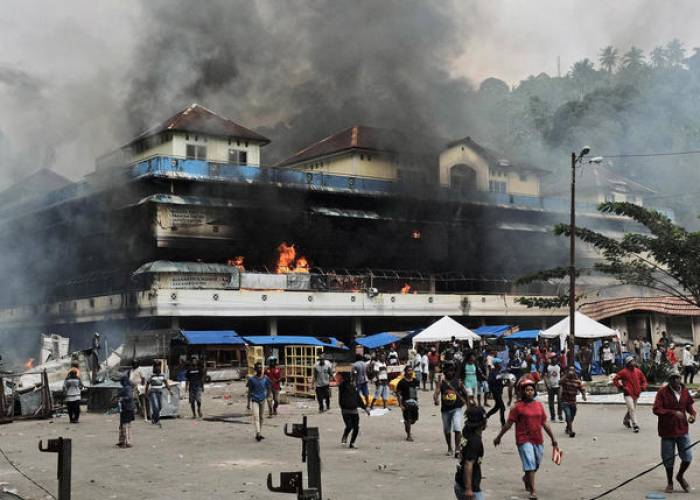 The PLN utility has turned off power in areas around the torched building, Ahmad Rofik, its regional director for Maluku and Papua, told Reuters.