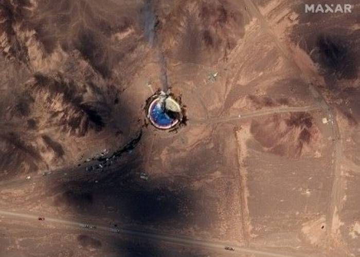 Satellite imagery published by the Planet Labs Inc. showed a black plume of smoke rising above a launch pad in the center.
