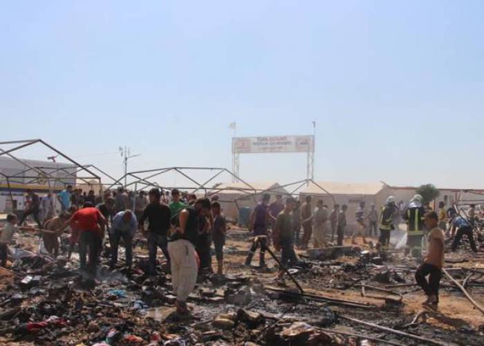 (Zaman Al Wasl)- A huge fire broke out in a refugee camp in northern Aleppo province, destroying 35 makeshift tents and wounding four displaced, Civil Defense agency reported.