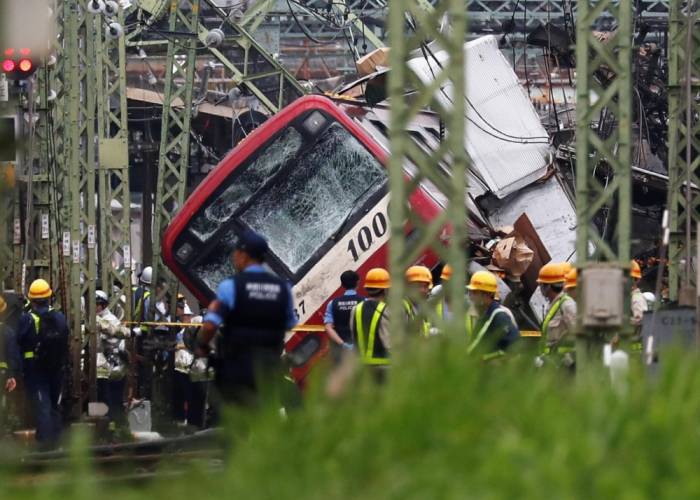 The accident, which halted trains on the commuter line run by Keikyu, happened near a station used by more than 19,000 people every day, the train operator said. There was no word on when services might resume.