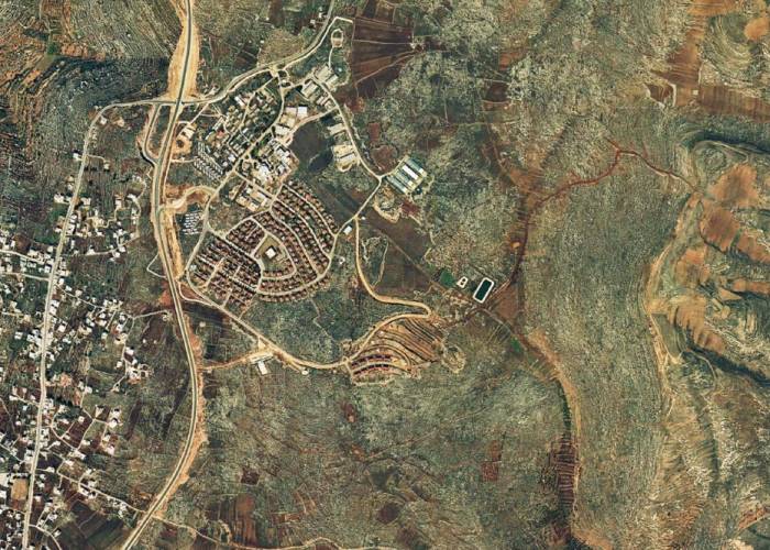 The red roofs of Ofra’s homes are easily seen from Ein Yabrud, the Palestinian village across the road.
