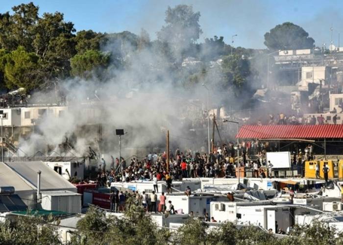 The violent clashes began at the Moria refugee camp on Sunday after a fire broke out inside a shipping container, one of the means Greek authorities use to house refugees. At least 17 people were hurt.