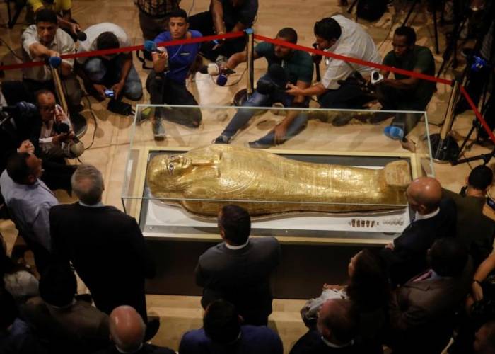 Egypt exhibited on Tuesday the golden coffin of an ancient Egyptian priest that was returned by New York’s Metropolitan Museum of Art following the discovery that it had been looted and illegally sold.