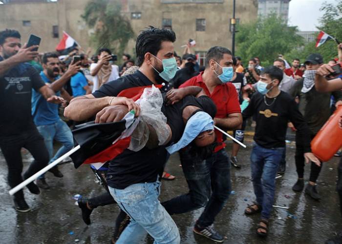 In Baghdad, Iraqi police had fired tear gas, rubber bullets and live shots on Friday to break up protesters who gathered in the central Tahrir Square and later tried to cross the bridge leading to the Green Zone. The protesters returned in Saturday, clashing with security forces throughout the day.