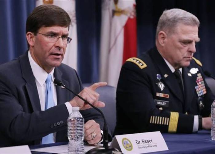 Esper emphasized that the purpose of securing Syria's oil region is to deny income to the Islamic State. But a reporter asked whether the mission includes preventing Russian and Syrian government forces from entering that area.