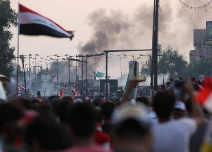 Security forces used tear gas and stun bombs to prevent protesters from getting right across Ahrar Bridge in central Baghdad, part of a weeks-long attempt to disrupt traffic and reach the Green Zone housing government ministry and embassies.