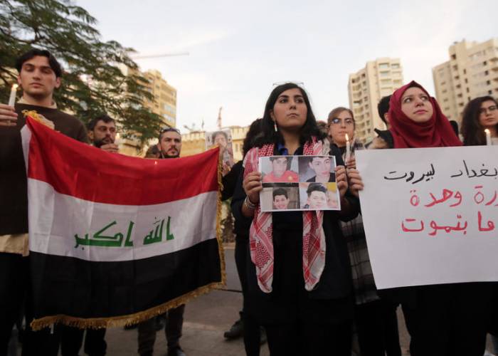 At the vigil on Saturday, a demonstrator who gave his name as Hussein said that in light of excesses committed by Lebanese security forces, protesters had a duty towards their peers in Iraq.
