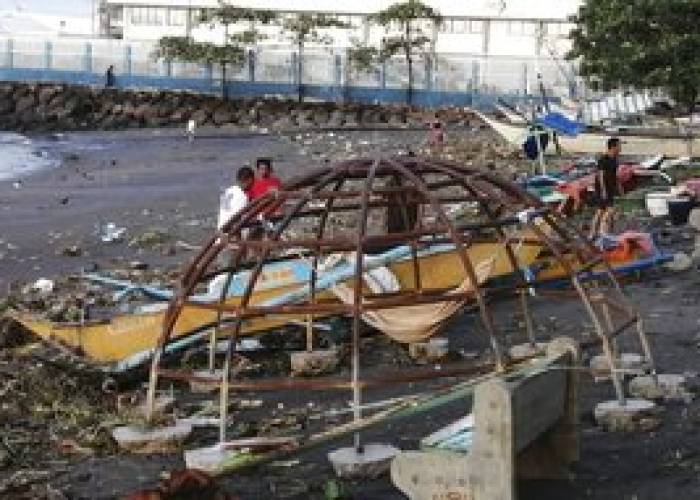 Typhoon Phanfone stranded many people in sea and airports at the peak of holiday travel, set off landslides, flooded low-lying villages, destroyed houses, downed trees and electrical poles and knocked out power in entire provinces. One disaster response officer described the battered coastal town of Batad in Iloilo province as a “ghost town” on Christmas Day.