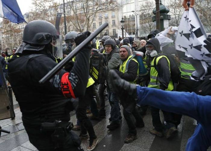 Scuffles break out in Paris as pensions protesters, 'yellow vests' march