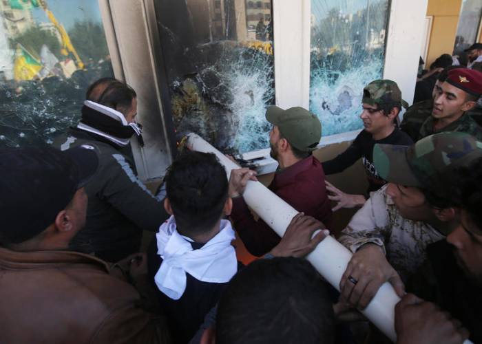 Earlier in the day, thousands of Iraqis stormed the U.S. embassy compound, protesting against airstrikes Sunday in Iraq and Syria against the Kataib Hezbollah militia that killed at least 25 fighters.