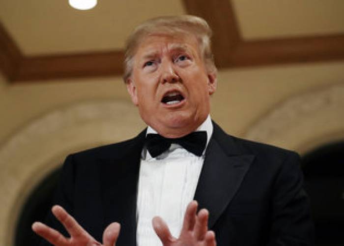 Wearing a tux, Trump was asked by a reporter if he foresaw a chance of war with Iran. Raising his voice to be heard over the holiday revelers, Trump said he wanted “to have peace.”