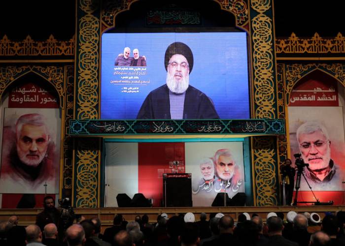 Nasrallah's speech was beamed to black-clad supporters gathered in southern Beirut, who waved Hezbollah's yellow flag or held up portraits of Soleimani and Muhandis.