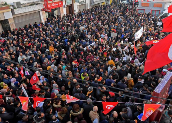Addressing the crowd, Noureddine Tabboubi, secretary-general of the powerful confederation, denounced a political class that he said wanted "to divide Tunisians".