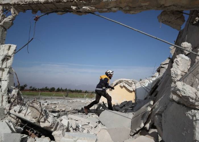 The attack killed at least five people and injuring nine others, said the White Helmets, a local civil defense agency.