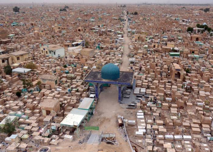 Clad in black, they joined wailing women and men beating their chests in grief at Wadi al-Salam (valley of peace), an ever expanding cemetery.