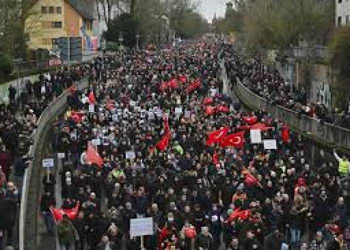 Around 10,000 protesters marched through the central German town of Hanau Sunday to mourn the nine people who were killed by an immigrant-hating gunman four days ago.