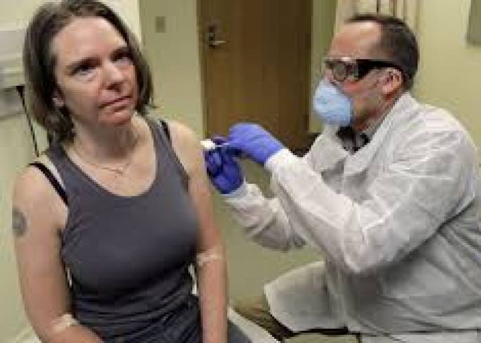 The Associated Press observed as the study’s first participant, an operations manager at a small tech company, received the injection inside an exam room. Three others were next in line for a test that will ultimately give 45 volunteers two doses, a month apart.