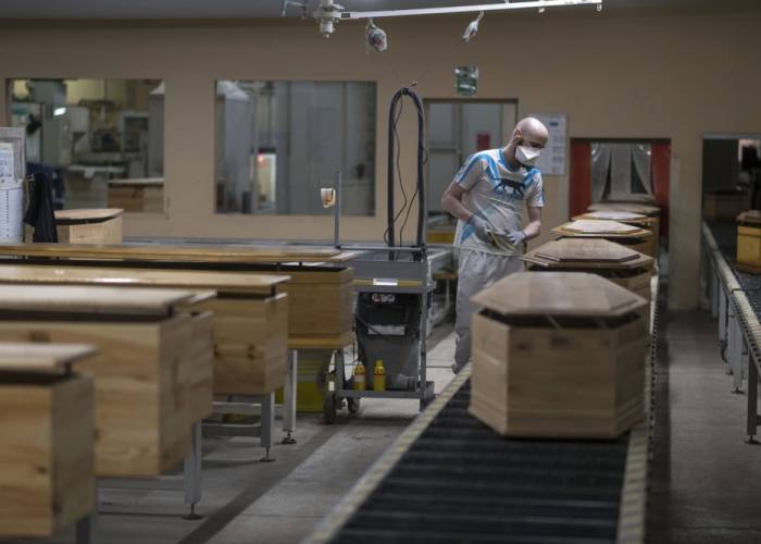 At a factory belonging to Europe's largest coffin maker, OGF, in eastern France, workers are doing overtime to meet demand from families parting with their loved ones.