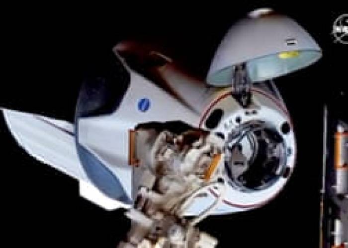 A few hours before docking, the Dragon riders reported that the capsule was performing beautifully. Just in case, they slipped back into their pressurized launch suits and helmets for the rendezvous.