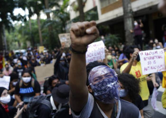 In Brazil, hundreds of people gathered in front of the Rio de Janeiro state government palace to protest crimes committed by the police against black people in Rio’s working-class neighborhoods, known as favelas.