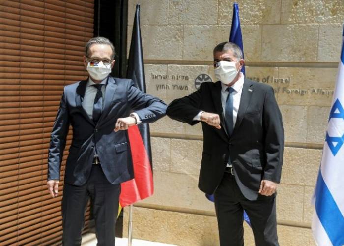 Maas, the first high-level European visitor to touch down in Israel since the coronavirus pandemic hit, on arrival touched elbows with his Israeli counterpart, both wearing face masks.