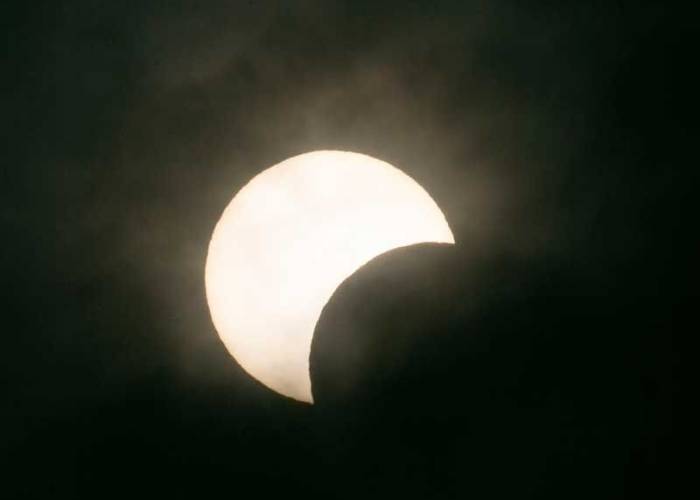 In Nairobi, east Africa, observers saw only a partial eclipse as clouds blocked the sky for several seconds at the exact moment the Moon should have almost hidden the Sun.