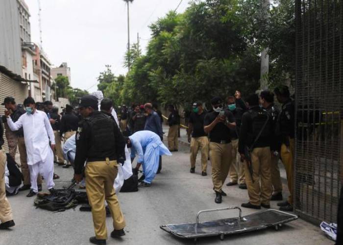 Karachi police chief Ghulam Nabi Memon said the attackers pulled up in a car outside the trading floor and hurled a grenade at the building before opening fire.