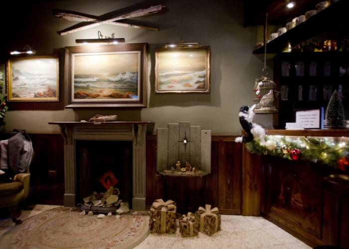 The artist, whose true identity remains a secret, reworked three traditionally framed, romantic-era-style oil paintings depicting tumultuous seascapes, adding discarded life jackets and buoys, to produce the pieces entitled "Mediterranean Sea View 2017".