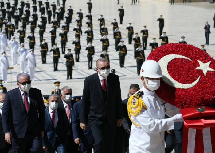 President Recep Tayyip Erdogan, senior government and high-ranking military officials, and opposition leaders laid a wreath at Anitkabir, the mausoleum of Turkish Republic's founder Mustafa Kemal Ataturk in the capital Ankara.