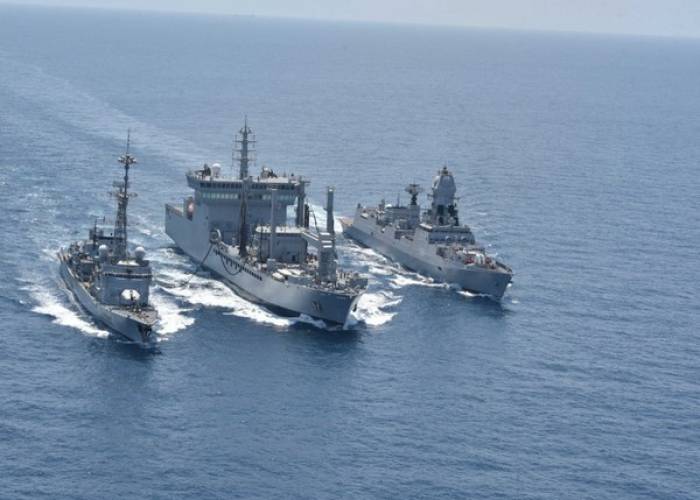 The mission said in a statement that a German frigate, supported by an Italian frigate, stopped the merchant vessel Royal Diamond 7 just after dawn in international waters, 150 km north of the Libyan city of Derna.