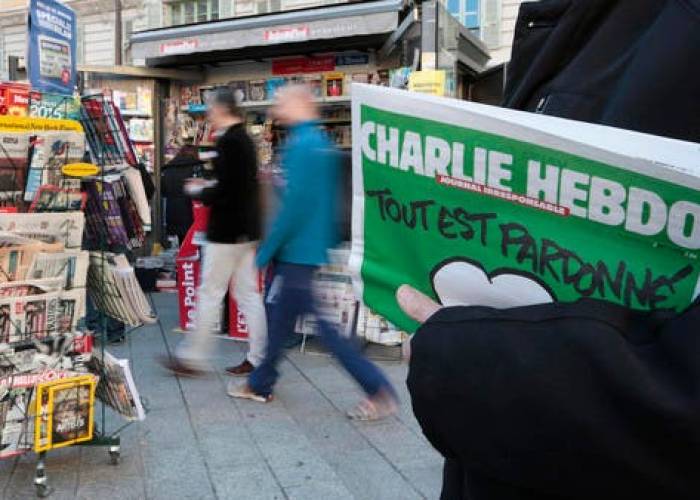 The satirical weekly reprinted the controversial images to mark the start of the trial earlier this month of alleged accomplices to a massacre at its headquarters over five years ago.