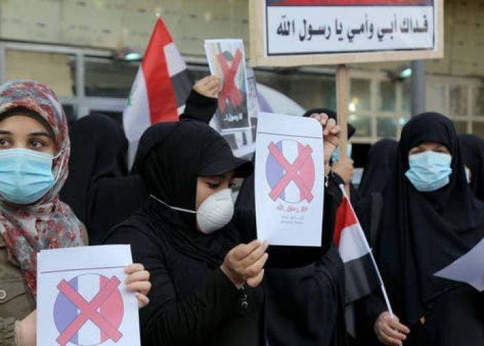 "We denounce Macron who had the audacity to dishonour our blessed Prophet," said Aliaa al-Khafaji, a 40-year-old woman.