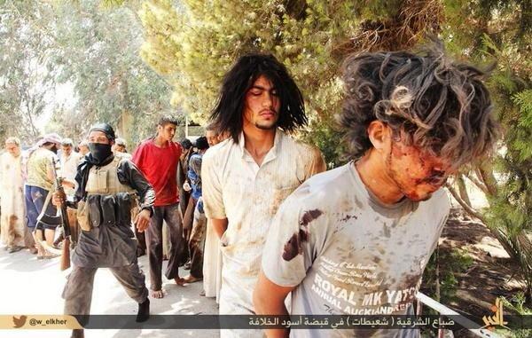 A twitter account for the Islamic State in Deir Ezzor posted a photo showing nine people with their heads down and hands tied behind their backs and claimed they were captives from Shaitat who had committed "treachery".