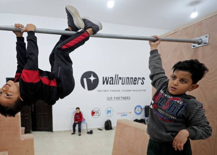 The Palestinian territory's first parkour gym - equipped with wooden boxes over which youngsters can soar in twists and flips, and padded mattresses to land on - has opened its doors.
