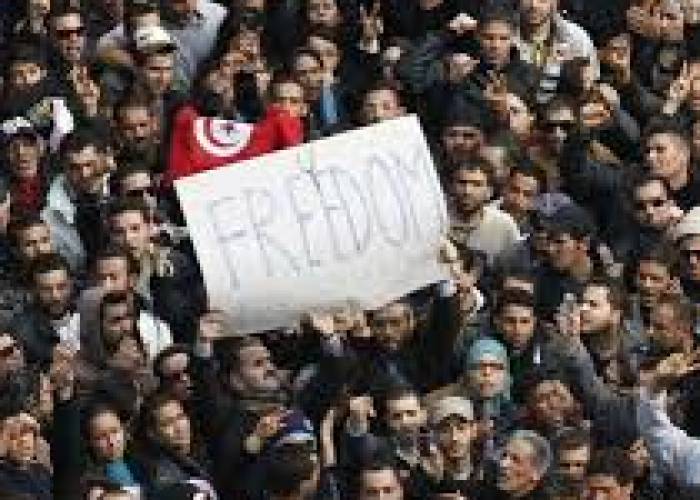 "The Tunisian people have political rights, but are still waiting for their demands for dignity and work to be fulfilled," he said, alluding to the revolutionary slogan of demonstrators crying out, "freedom, jobs and dignity."