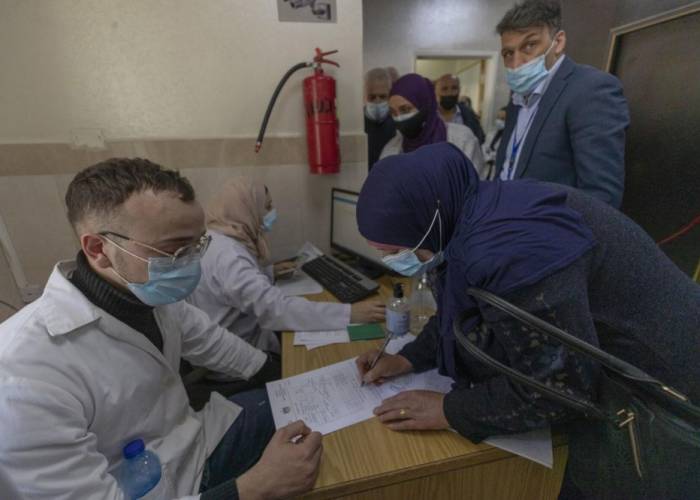 At a Gaza City clinic, five WHO workers and five local medical workers were the first to be inoculated with COVAX-donated doses.